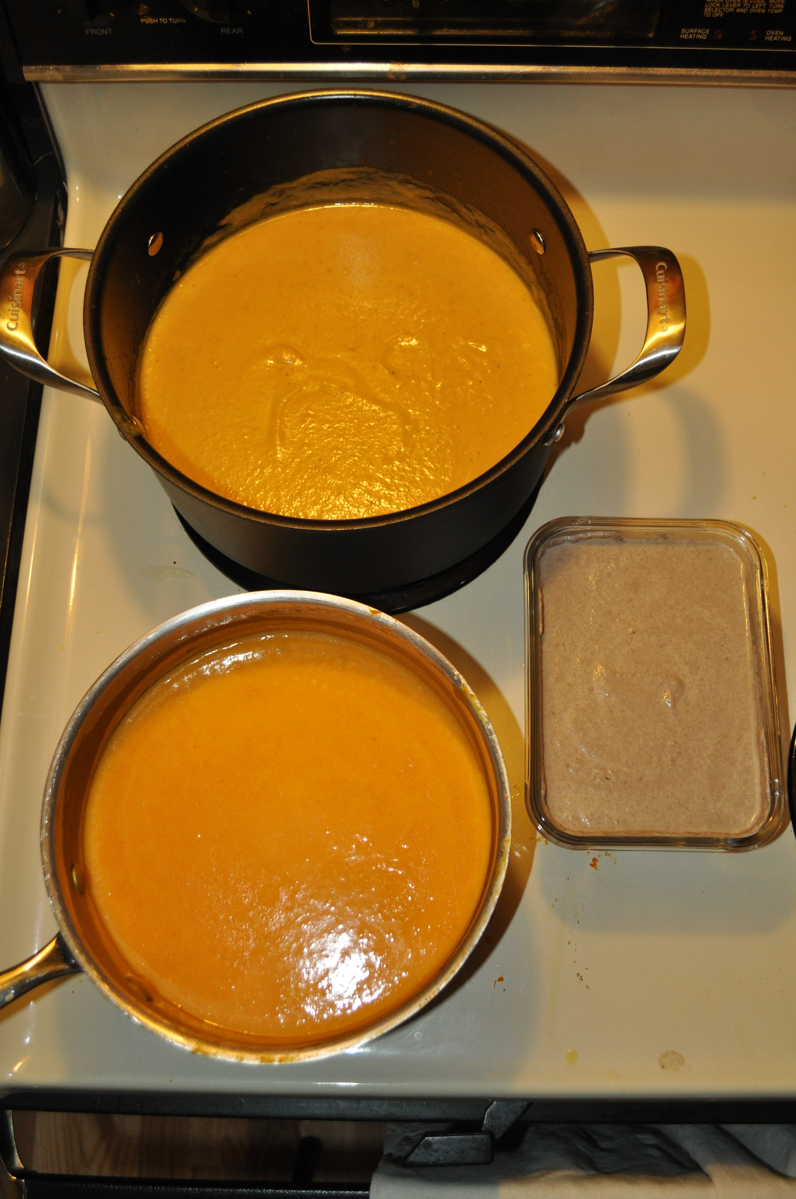 It just so happened that all three of the soups I made were of the pureed variety – two according to the recipes and one by my own choice. Though I love a good hearty, chunky soup, I often enjoy a good pureed soup as a way to use a lot of different ingredients to create exciting new flavors, and they generally make excellent “comfort foods.” Also, though I have done no research whatsoever on this, I feel it might be one of the best ways to help my body really absorb and utilize the nutrients in food. As my husband will tell you, I am not exactly a slow eater, which unfortunately probably doesn’t do my body any favors when it is trying to digest the foods I ingest. I’m working to slow myself down and chew my food more (that sounds ridiculous for a 27-year-old to say, seems like something I should have learned a couple decades ago), but the pureed soups (hopefully) help in the meantime.